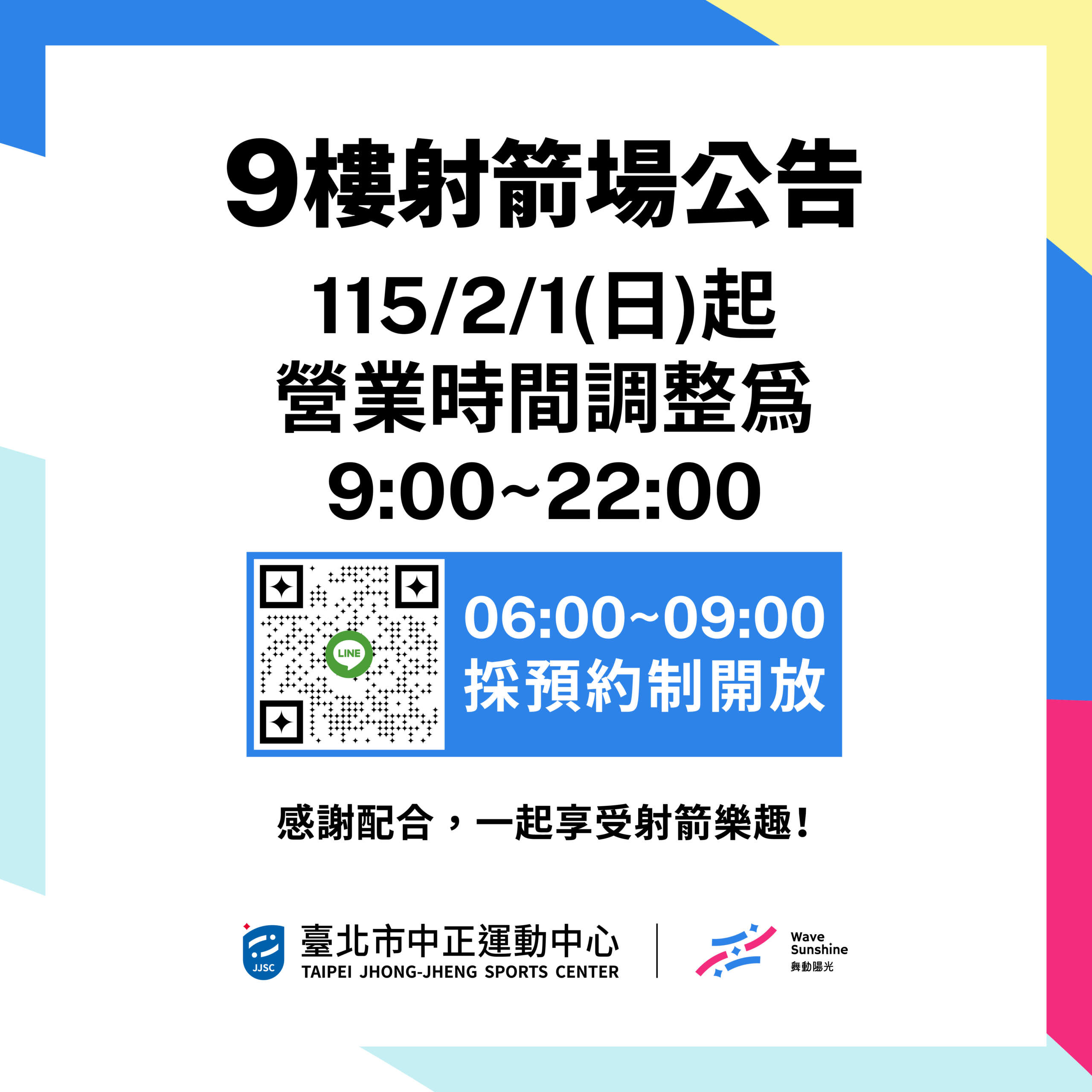 【𝟗𝐅 射箭場營業時間調整公告】