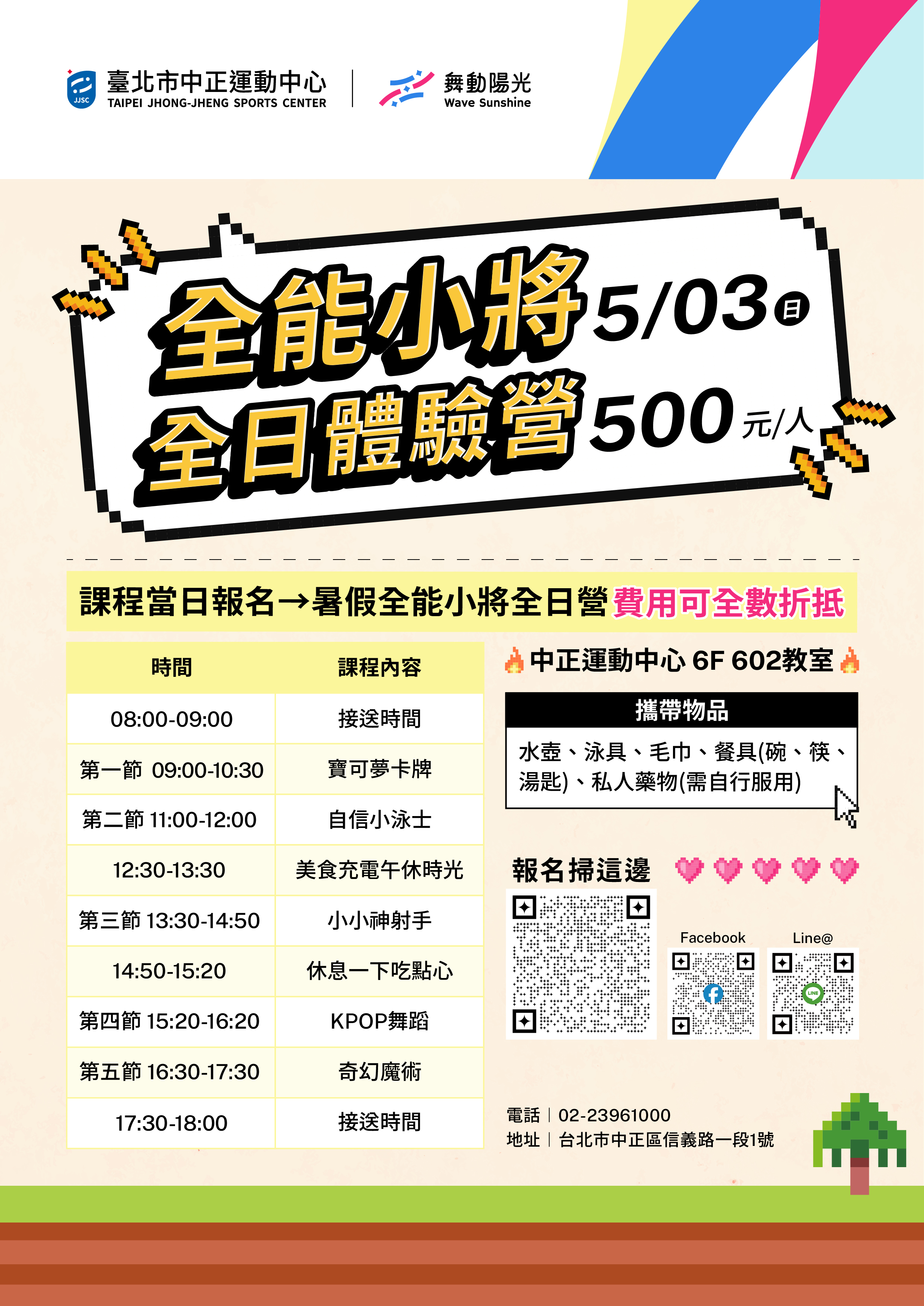 【 𝟓/𝟎𝟑 全能小將體驗營🔥 限額開搶!】