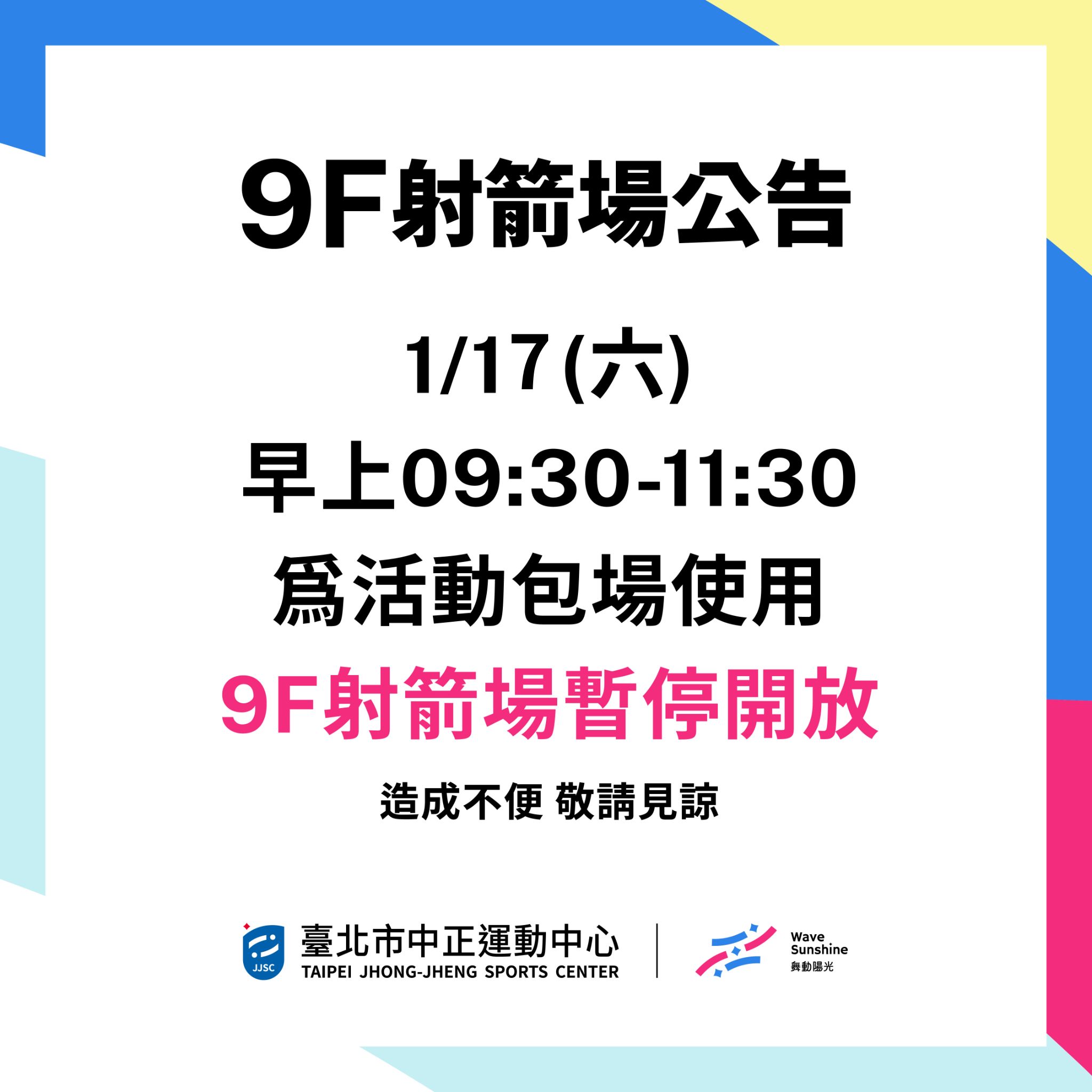 【9F 射箭場】1/12-1/18 包場時段暫停開放