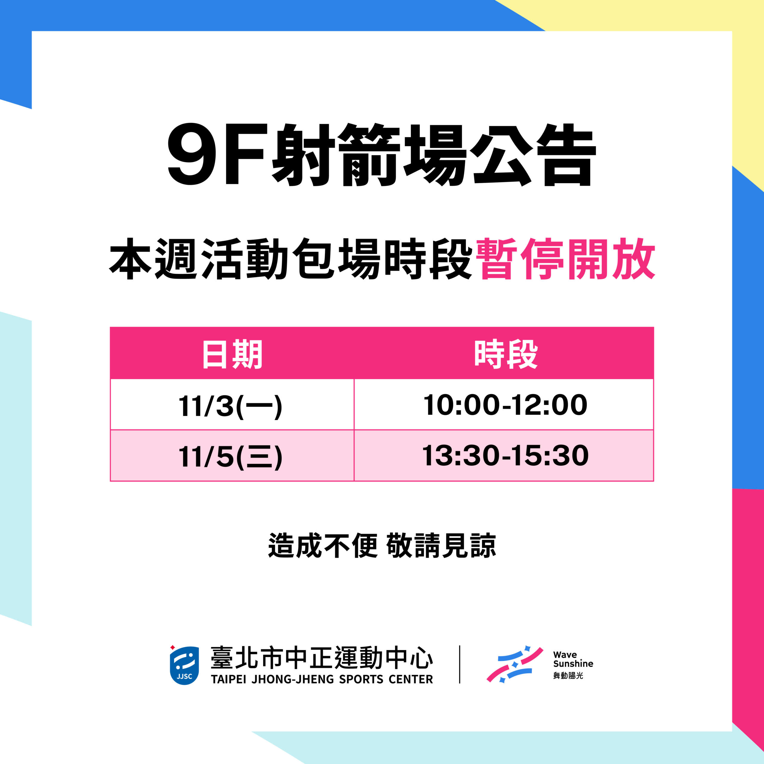 【9樓射箭場】 11/3-11/9 包場及課程公告