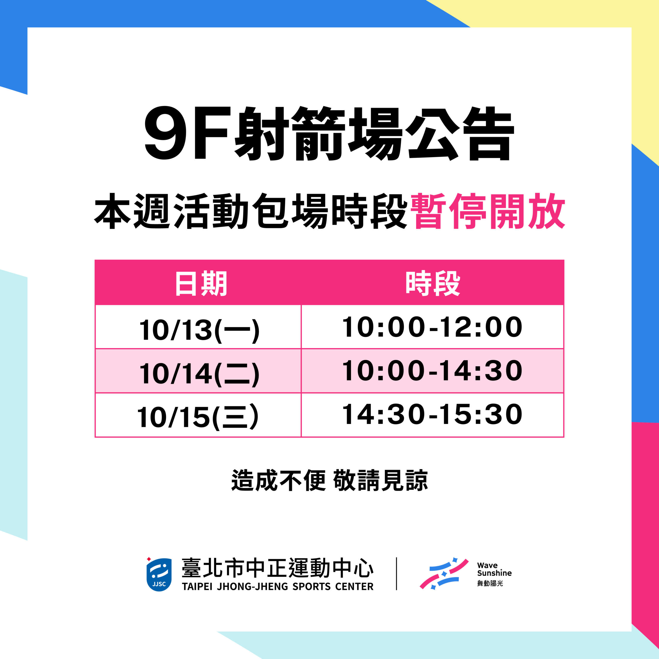 【9樓射箭場】 10/13-10/19 包場及課程公告