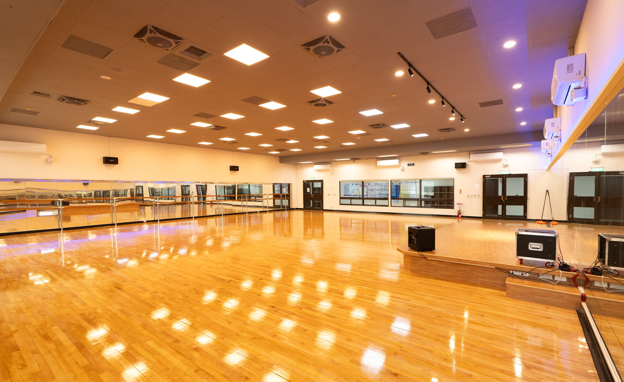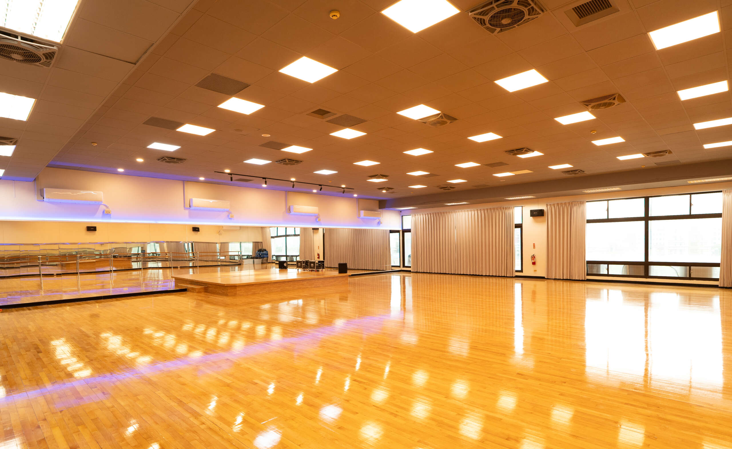 本層樓擁有台北市少數大坪數的教室約82坪,採用大片落地窗設計,自然光灑落在木質地板上,使空間更為開闊且明亮;教室內全面升級,新增冷氣、音響與舞台設備,不僅讓上課過程零死角,也大幅提升運動時的舒適度與體驗。
